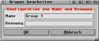 Verwenden Sie diesen Dialog, um Ihrer Gruppe einen Namen zu geben. Geben Sie einfach den gewünschten Namen ein und bestätigen Sie mit "OK". Der Name der Gruppe muss nicht eindeutig sein. Möglicherweise gibt es auf Ihren Seiten Gruppen mit demselben Namen.