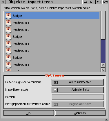 Wenn Sie Objekte auf zusätzliche Seiten importieren, können