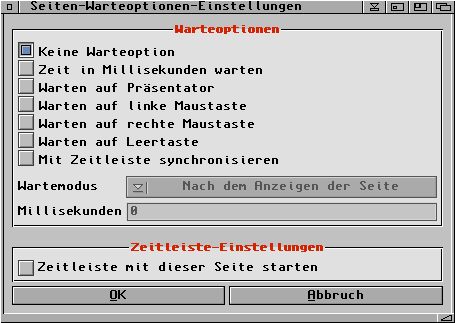 Warteoption eingestellt ist, wird daneben im Seitenverwaltung-Dialog