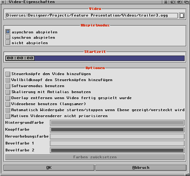 das Videoobjekt. "Asynchron abspielen" bedeutet, dass Hollywood Designer