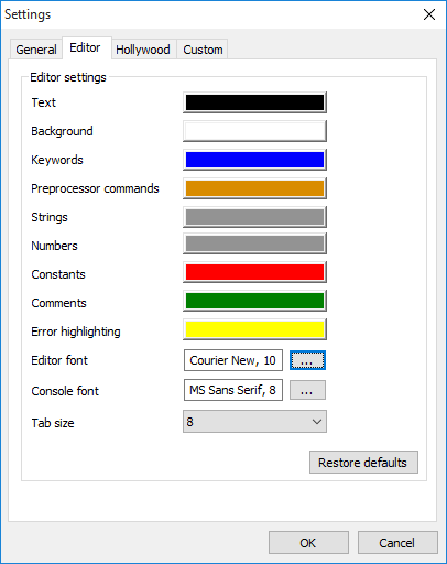 Wenn der Editor andere als die vordefinierten Schlüsselwörter markieren soll,