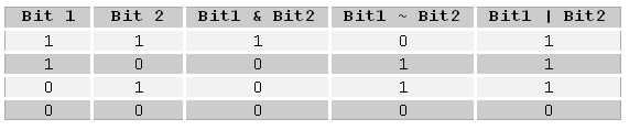 das Bit auf derselben Position gesetzt ist. Eine Tabelle: