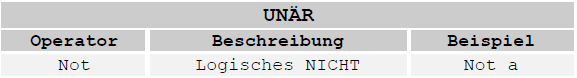 Operator wird seine Operanden negieren. Das Ergebnis wird immer True (1)